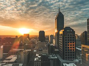 Aerial View of Downtown Indianapolis at Sunset